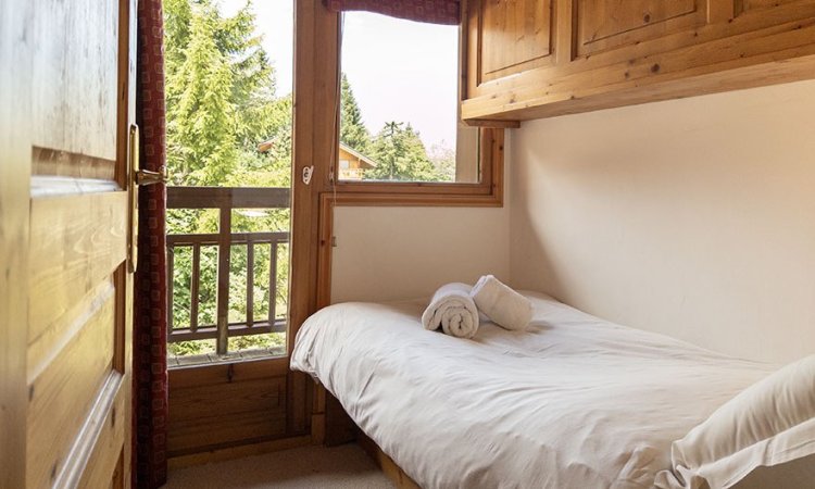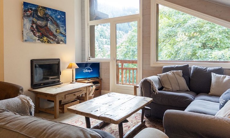 The apartment has beautiful views up the valley, of the Saulire mountain.