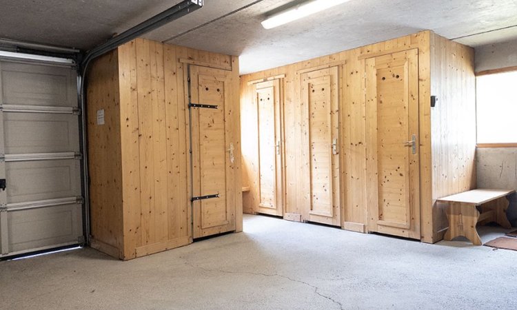 There is a ski locker with heated boot warmers in the garage.